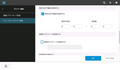 ウィークリータイマーによって本機が節電モードのときの使用をパスワードで制限する場合は、[時間外パスワードを使用する]をオンにします。