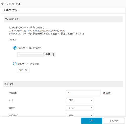 ダイレクトプリントは、Web Connectionを使って、コンピューターまたはSMB共有フォルダーにあるファイルを直接本機に送信して印刷する機能です。