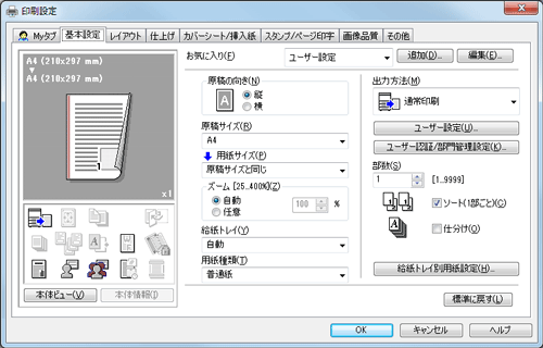 プリンタードライバーの[プロパティ]画面を表示します。