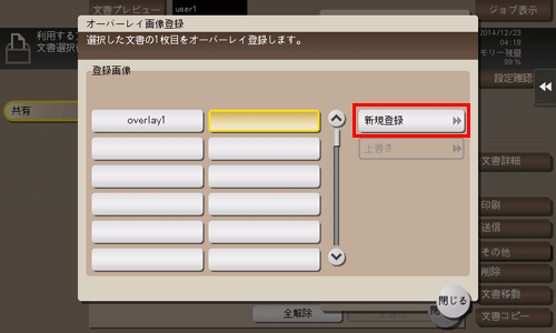 新しくオーバーレイ画像を登録する場合は、未登録のキーを選び、[新規登録]をタップします。