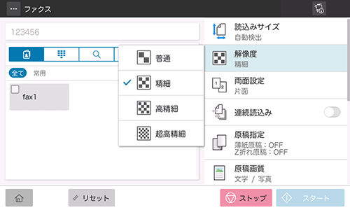 [普通] | 画質の細やかさを求めない原稿を読込むときや、大量の原稿を短時間で送信したいときなどに選びます。 |
