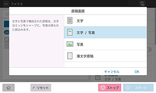 原稿の記載内容に適した設定を選んで、最適な画質で読込みます。