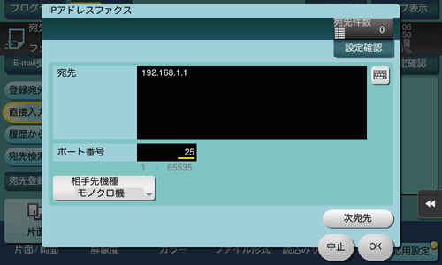 IPアドレスファクス送信の宛先情報を直接入力して指定します。