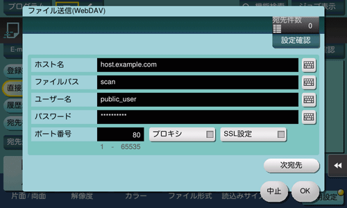 WebDAV送信の宛先情報を直接入力して指定します。