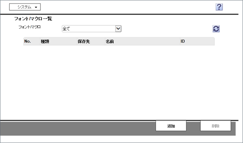 フォント/マクロデータの追加する場合は、[追加]をクリックします。