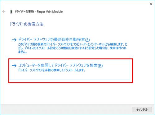 ドライバーソフトウェアの検索方法を選択する画面で[コンピューターを参照してドライバーソフトウェアを検索します]をクリックします。