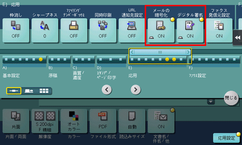 [応用設定]-[応用]-[メールの暗号化]と[デジタル署名]を設定します。