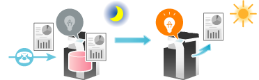 平日の休み時間や夜間など、本機を使用しない時間帯は、電源キーを押し、副電源OFF状態にして電力を節約します。副電源OFF状態のときに受信したファクスは印刷できませんので、電源キーを押し、副電源OFF状態を解除して印刷してください。