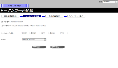 • ライセンスを登録するには、機能拡張オプションに入っているトークン証書が必要です。