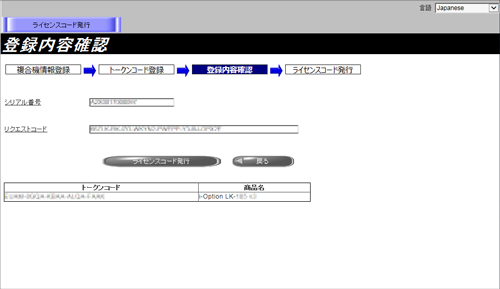 6. 登録した内容を確認して、ライセンスコードを発行します。
