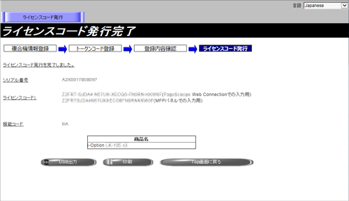 機能コードと、ライセンスコードが発行されます。メモなどに控えておくか、Webページを印刷してください。