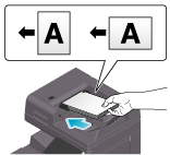 原稿の天部(上側)が奥側になるようにセットしてください。別の向きでセットしたときは、必ず原稿のセット方向を指定してください。原稿のセット方向について詳しくは、こちらをごらんください。