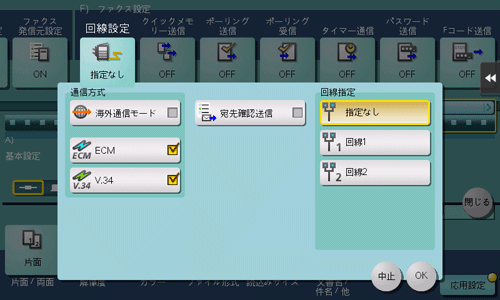 通常は[回線1]を使います。[指定なし]を選ぶと、空いている回線を使って送信します。