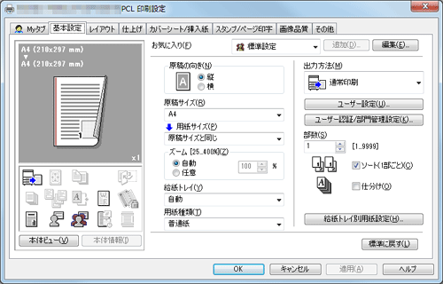 はじめてお使いになるときは、本機のオプションの装着状態や認証設定の有無などを、プリンタードライバーに設定します。