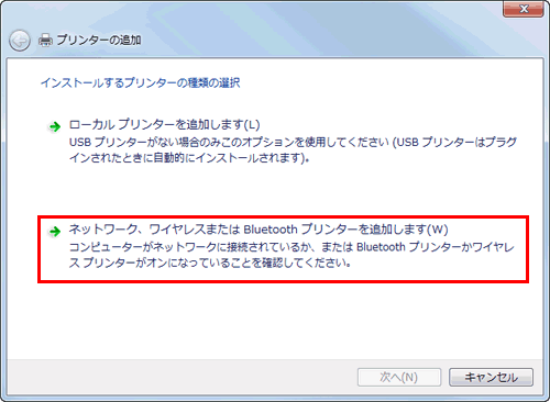 [ネットワーク、ワイヤレスまたはBluetoothプリンターを追加します]をクリックします。