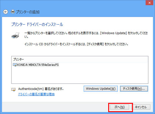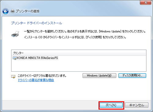[プリンター ドライバのインストール]ダイアログボックスが表示されます。