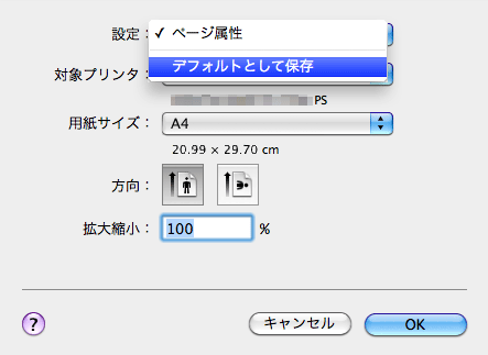 設定を変更し、[設定:]から[デフォルトとして保存]を選びます。