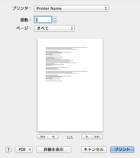 [プリンタ:]で、印刷したいプリンターが選ばれていることを確認します。