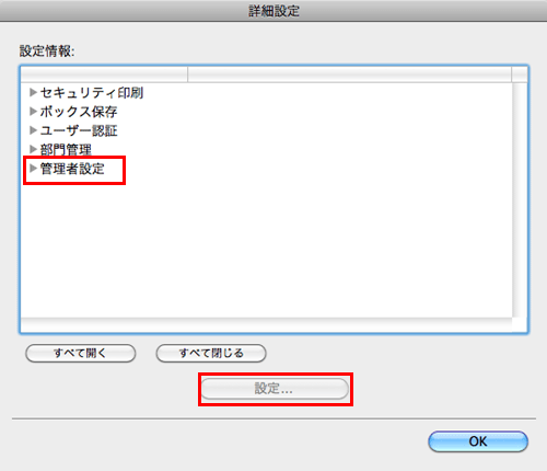 [管理者設定]を選び、[設定...]をクリックします。