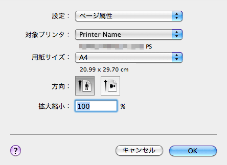 Mac OS X 10.5/10.6/10.7/10.8/10.9をお使いの場合は、プリント画面でも[用紙サイズ]と[方向]の設定ができます。