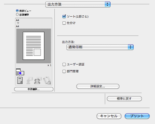 [出力方法] | 本機から原稿を印刷する方法を選びます。 | |