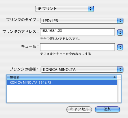 Mac OS X 10.2/10.3をお使いの場合に、LPR接続でプリンターを追加する手順を説明します。