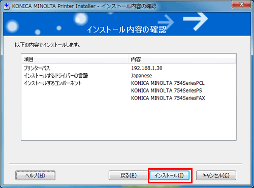[内容確認] | インストール内容を確認できます。 |