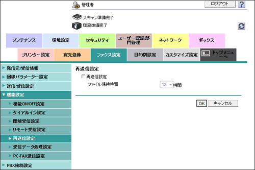 再送信機能は、オートリダイアル機能でも送信できなかったファクスを本機のボックスに一定期間保存する機能です。