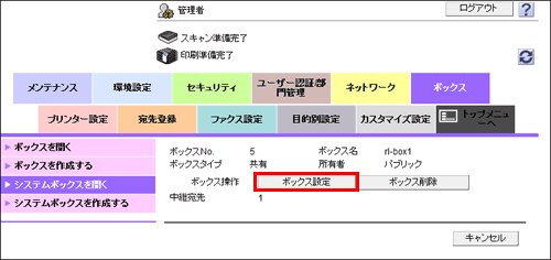[ボックス属性変更]で、ボックスの設定を変更します。