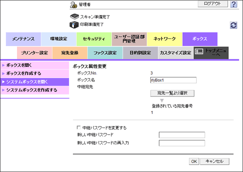 管理者モードにログインすると、中継ボックスのパスワードを入力しなくても、登録されている中継ボックスの設定を変更したり、削除したりできます。