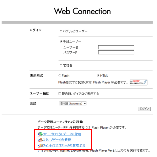 データ管理ユーティリティーは、Web Connectionのログイン画面から起動します。