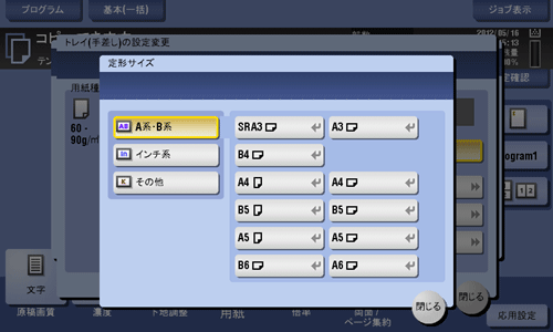 手差しトレイに、A系またはB系の用紙サイズをセットして使う場合に、セットする用紙のサイズを選びます。