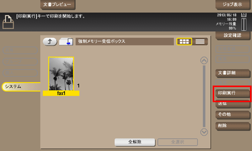 印刷したいファクスを選び、[印刷実行]をタップします。