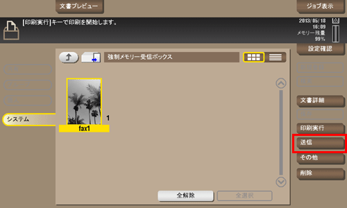 強制メモリー受信ボックスに保存されているファクスを送信するには、オプションのアップグレードキット UK-204、i-Option LK-110が必要です。