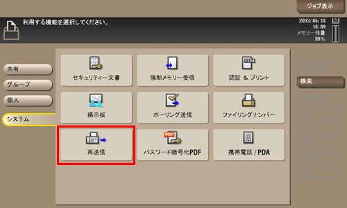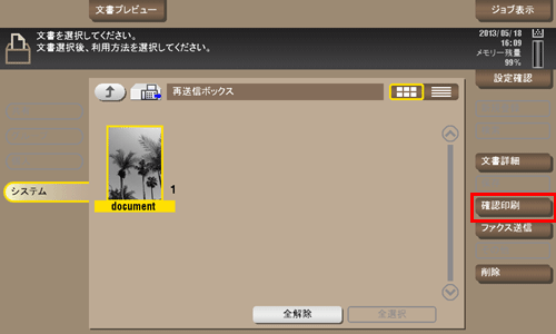 再送信ボックスに保存されているファクスは先頭ページだけ印刷できます。印刷してもファクスは削除されません。