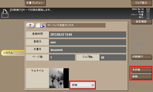 [詳細]またはサムネイル画像をタップすると、ファイルのプレビュー画像を確認できます。