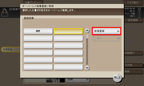 複数ページのファイルの場合は、1ページ目がオーバーレイ画像として登録されます。