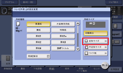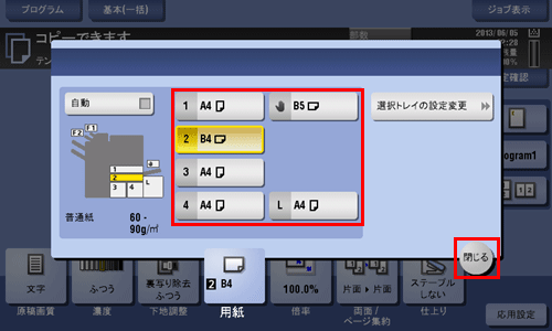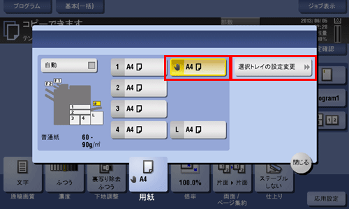 [用紙] | コピーする用紙がセットされている給紙トレイを選びます。 |