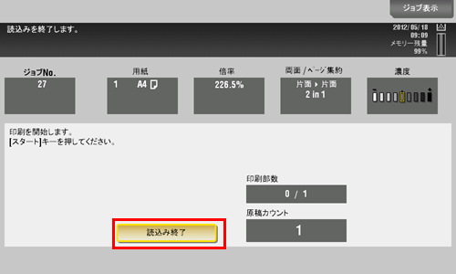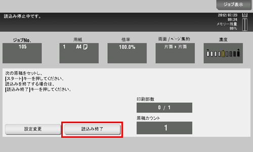 原稿の読込みが終わったら、次の原稿をADFにセットし、スタートを押します。