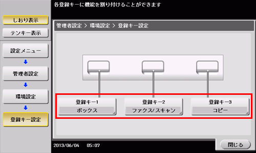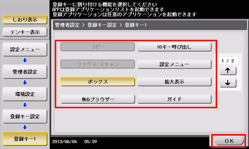 登録キーに割当てる機能を選び、[OK]をタップします。