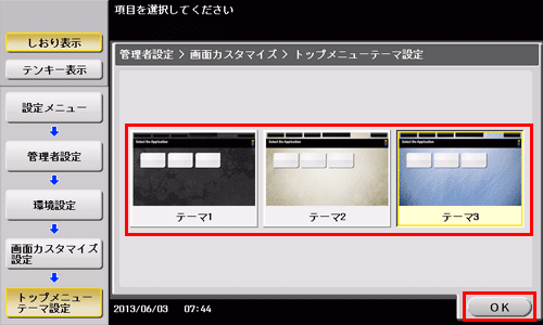 [環境設定]-[画面カスタマイズ設定]-[トップメニューテーマ設定]を選びます。