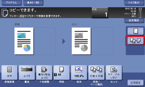 A1. コピーモードおよびボックスモードでは、よく使う設定をショートカットキーとしてトップ画面に表示できます。
