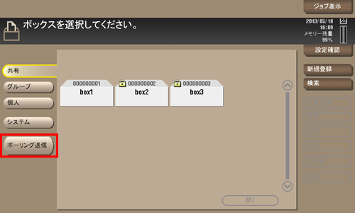 ボックスモードのトップ画面にショートカットキーが表示されます。