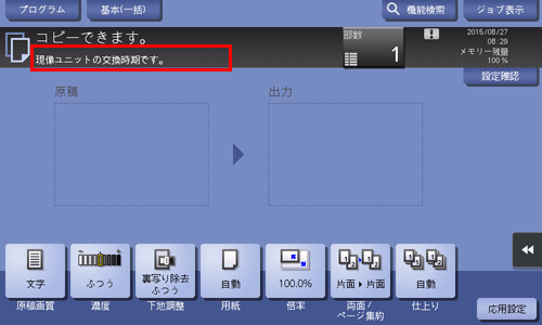 現像ユニットの交換時期が近づくと、交換時期が近づいていることをお知らせするメッセージが表示されます。