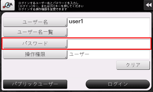 本機でユーザー認証や部門管理を導入している場合は、タッチパネルにログイン画面を表示します。