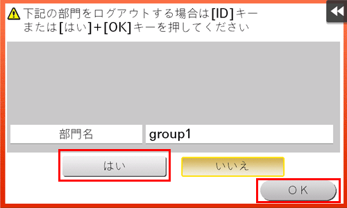 ユーザー認証と部門管理を導入し、ユーザー認証と部門管理が連動していない場合は、このあと部門認証が必要です。詳しくは、こちらをごらんください。
