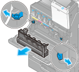 廃棄トナーボックス固定レバーを外して、廃棄トナーボックスを取外します。