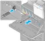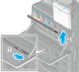 プリントヘッド窓清掃具を、本機の前ドアから取外します。
