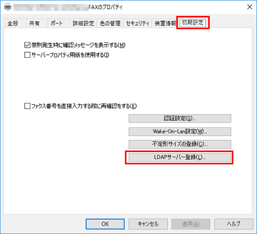 2. [初期設定]タブの[LDAPサーバー登録...]をクリックします。