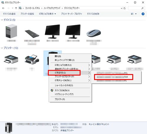 [デバイスとプリンター]の表示のしかたについては、こちらをごらんください。